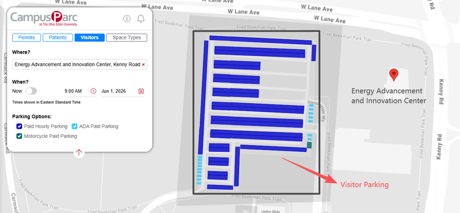 If you would like to drive, there are multiple parking lots nearby, in which you can self-park. Visitors can park at 2200 Carmack Rd, Columbus, OH 43210.